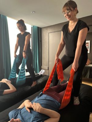 - l’apprentissage du Rebozo mexicain et du Pa-Khaw-Ma thaïlandais